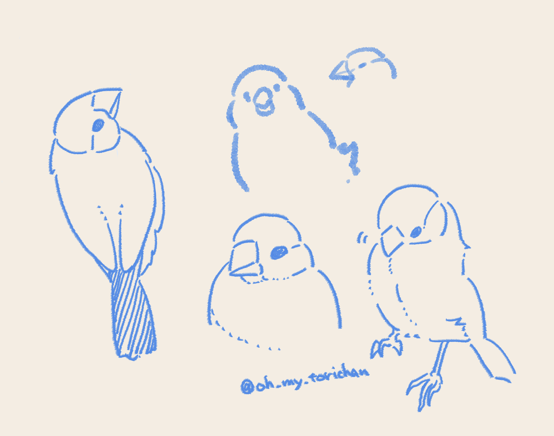 2023.10.24 2023.10.26 文鳥日記 手に幸せ、文鳥の日にブログをはじめる。 Oh_my_torichan 文鳥日記をつけるにあたりどんなふうに描こうか迷走してる図。 10月24日は文鳥の日! 初めまして、鳥野とまりぎ です。 文鳥の日からうちの文鳥たちの日記をつけようとブログを始めてみました。 こんなにかわいらしいうちの子たちのエピソードを見てほしいのと、まとめておきたくなったのと、あとで思い出として振り返りたいのと。 楽しく続けていけたらいいな〜よろしくお願いします🕊 #文鳥 ABOUT ME ンナ文鳥メインの作家 2羽の文鳥と暮らしている